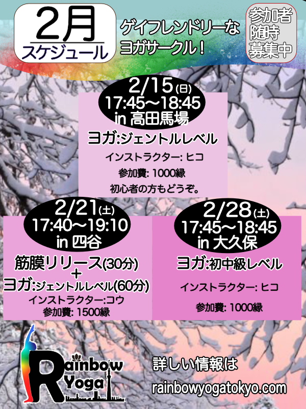 スケジュール 各月の予約開始日は、その前月の第一月曜日の夜からとなります(例:4月のレッスンの予約開始日は、3月の第一月曜日の夜位より)。 各レッスンやイベントへのお申込みは、下記のボタンをクリック。 練習場所の詳しい情報は、予約完了後、お送りいたします。 ご予約・お問い合わせ 共有: クリックして X で共有 (新しいウィンドウで開きます) X Facebook で共有するにはクリックしてください (新しいウィンドウで開きます) Facebook いいね 読み込み中…